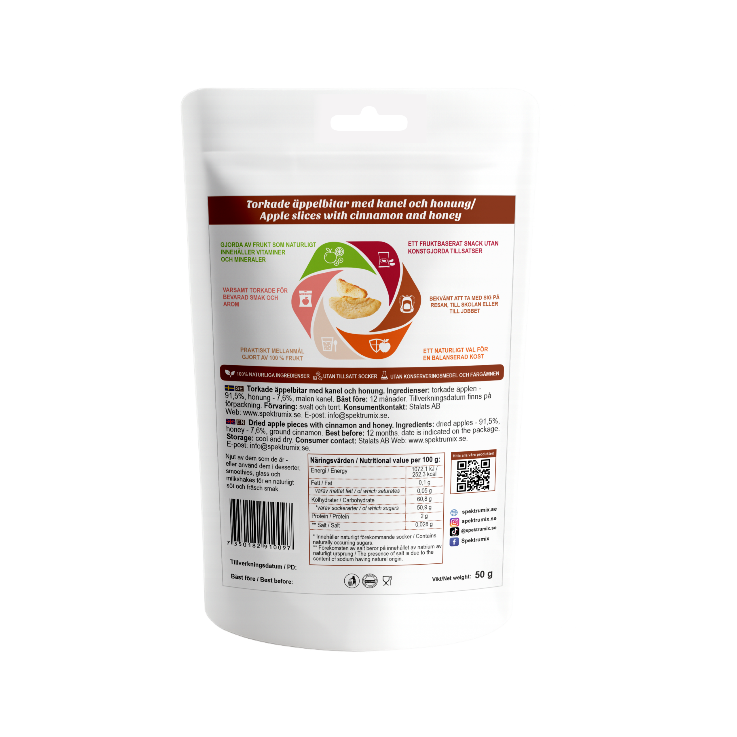 🍎Ingredienser: Torkade äpplen – 91,5%, honung – 7,6%, malen kanel